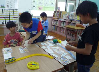 お互いに声をかけ合いながら,4くみタウンをつくることができました。