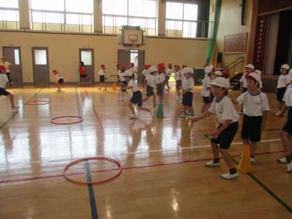 今日のスポーツキッズは,色々なリレーをしました。さいごに変わったおにごっこをしました。みんなめいいっぱい体を動かして活動していました。