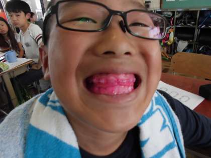 普段の歯みがきがどれくらいしっかりとできているか,確認しました。