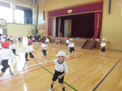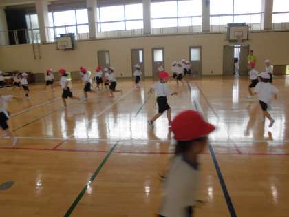 今日のスポーツキッズは,しっぽとりをしました。みんなしっぽをとられないように,一生懸命走りました。そのあと,ドッジボールをしました。いろいろな運動を取り入れていきます。