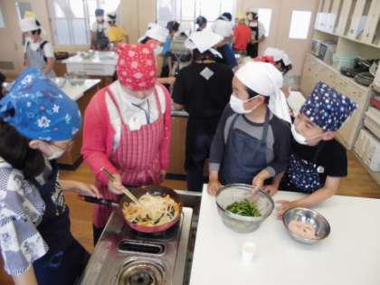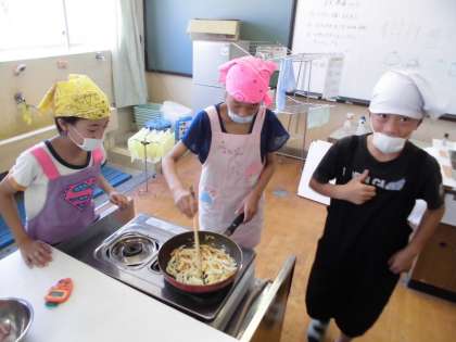 まず,かたいにんじんから炒め,次にピーマン,タマネギ,,最後にハムを入れました。