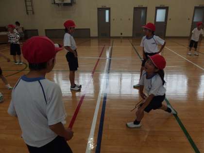 体育では,ゴムを使って