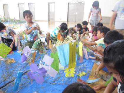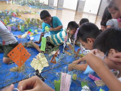 自分の願いと,夕陽の見守りたいの方々への感謝の気持ちを書いた短冊を,笹に結びつけました。