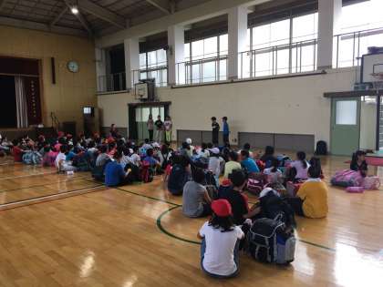 7月10日(月)〜14日(金),5年生は4泊5日で花背山の家に宿泊します。この宿泊学習では,「自然」「仲間」「規律」「感謝」の4つのキーワードを『めあて』として活動します。みんな元気に出発しました。