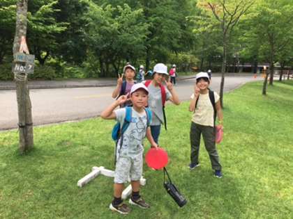 テント設営が終わり,フライングディスクゴルフに挑戦しています。みんな楽しそうですね。