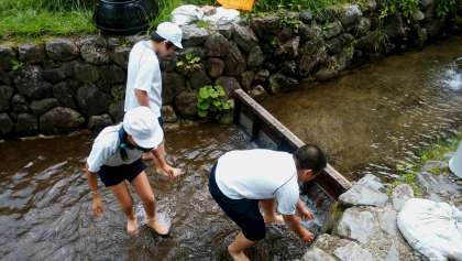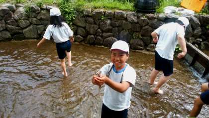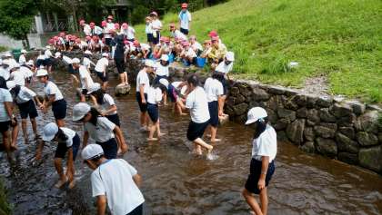 水がとっても冷たいようです。今日は暑いから,川に入るにはちょうどいいですね。