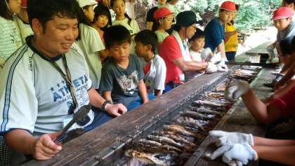 先ほどの魚を焼いています。美味しそうに焼けています。