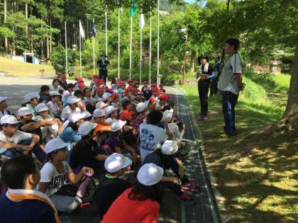 暑い中の冒険の森。5年生のみんなは元気です。今日はナイトハイクもありますね,頑張っていきましょう。