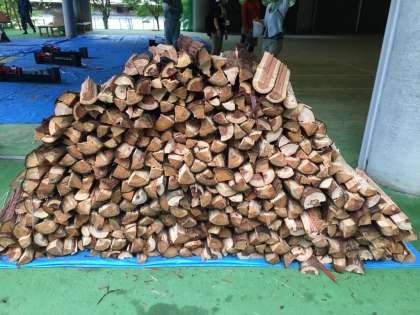 子どもたちが頑張って,この活動で割った薪です。お疲れ様でした。