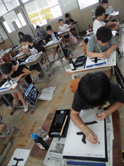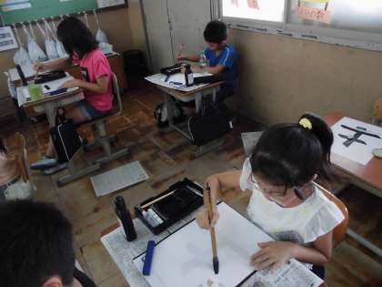 初めて,自分の名前を書く練習もしました。細筆を使って文字を小さく書くのが難しい様子でしたが,何度も練習しているうちに上手に書くことができました。