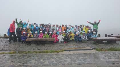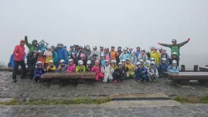 雨と風がつよい為、少し散策しました。みくりが池で学年写真を撮りました。