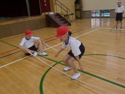 両足や片足など,色々な跳び方で縄を跳び越えました。