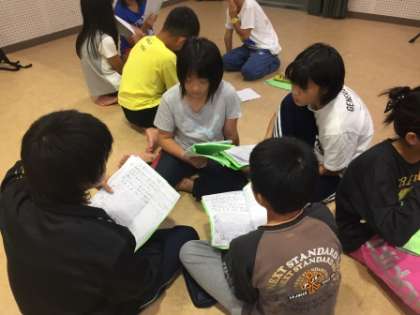 今日楽しかったことや,明日のスケジュール,荷物について確認しました。仲間と向き合って,しっかり話し合いができていますね。さすが,6年生です。