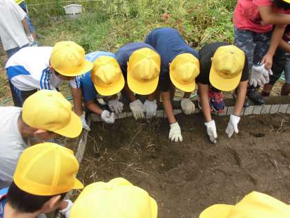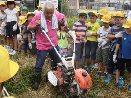 機械を使って土を掘り起こしてもらい,畑の土がふわふわになると,子どもたちからは「すごい。」と歓声があがっていました。