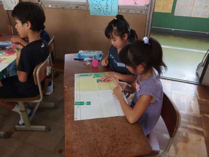 2人組で数え棒を使って,説明しています。