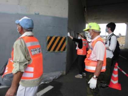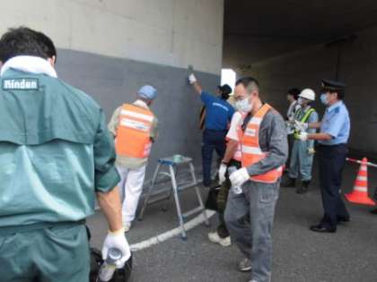 9月10日日曜日に地域のあんしんあんぜん上鳥羽推進委員会の方々が,校区の南部方面の落書き消しをしてくださいました。警察や役所の方々にもご協力いただき,大宮通りや1号線の下のトンネルの壁など,数か所を手分けして大変きれいにしてくださいました。