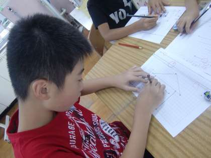 ものさしの使い方を確認し,きまった長さの線を引く練習をしています。