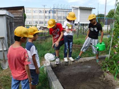 一人がスコップで土を柔らかくしたら,