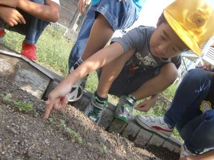 先週木曜日・金曜日に種まきをした二十日大根の芽が出ました。