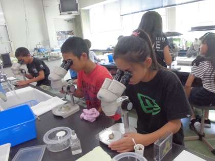 かたつむりのご飯を食べている様子を顕微鏡で見ると,たくさんの発見がありました。