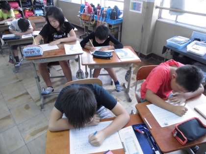 国語の教科書にある表を見ながら,自分の名前をローマ字で書く子ども達もいました。