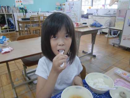 今日の給食では,スチームコンベクションオーブンで作って頂いた里芋の煮つけが出ました。