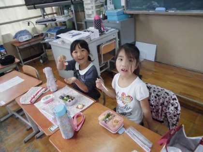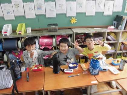 運動会は,雨天のため延期となりましたが,お家の方に作っていただいたお弁当がみんなの楽しみでした!!「おいしい!!」「みて〜。」とみんなとてもうれしそうでした。朝早くからお弁当を作っていただいてありがとうございました。