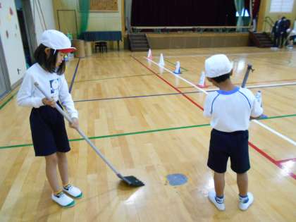 他校の児童が来る前に,体育館をきれいにしながらお出迎えの準備をしました。