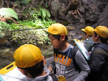 子どもたちは,この水族館の人気者である,オオサンショウオを探していました。
