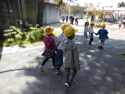 晴天の中,元気よく出発しました。動物園では,2年生とスタンプラリーをしました。