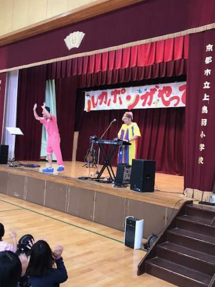 11月11日(土)10時45分より,上鳥羽学区子育て支援ステーションの方々による「ルカポンがやってくる!」という催しが行われました。上鳥羽学区にお住まいの,小さな子どもたちや保護者の方々,上鳥羽保育園・村山保育園の園児,中唐戸児童館・山ノ本児童館の子どもたちをはじめ,上鳥羽小学校の児童が参加しました。