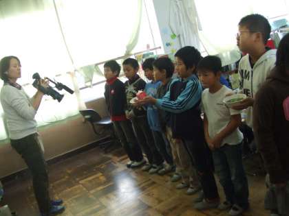 カメラを向けられて、笑顔になる子、顔がこわばる子、まじめになる子