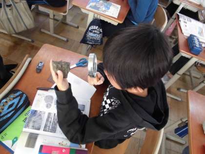 ルーペを使って岩石の観察・スケッチを行っていました。