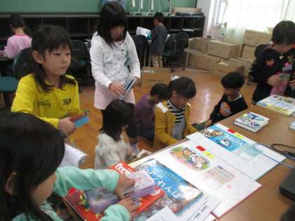 選書会に行きました。新しい様々な本が置かれているので,子どもたちは興味津々で色々な本を手にとって選んでいました。