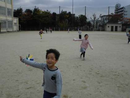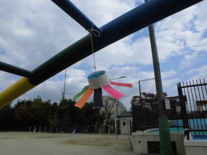 作ったものを回してみました。風のきつい日だったので,外でクルクルと回っていました。