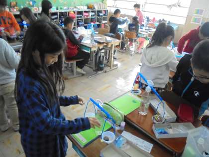 両手の感覚で重さをくらべていると,「もっと分かりやすい方法はないかな。」「どっちか分かりにくいな。」という子ども達のつぶやきから,はかりを使って調べることになりました。