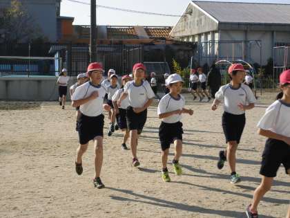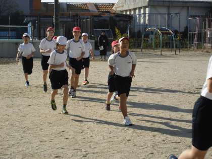 持久走大会では,10分間走りました。これまでの練習の成果を出しきれるよう,一生懸命に走りました。