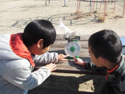 今日の算数では,1kgをつくろうという学習をしました。