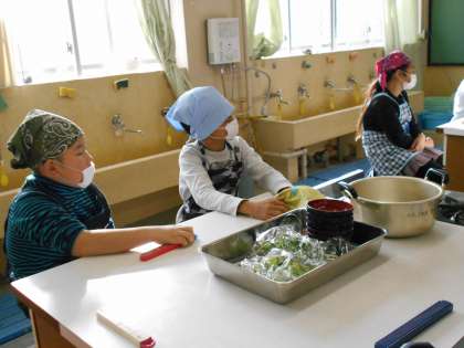 4くみ 4年生 水菜・壬生菜の調理 1