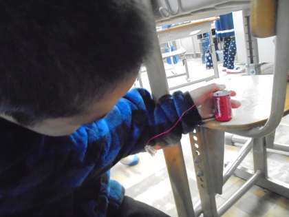 回路にすればあかりがつくと知った子ども達は,友だち同士で回路を作ったり,教室にある金属を使って,あかりをつけていました。