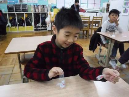 かた結びと袋開けが苦手な4くみのなかまたち。