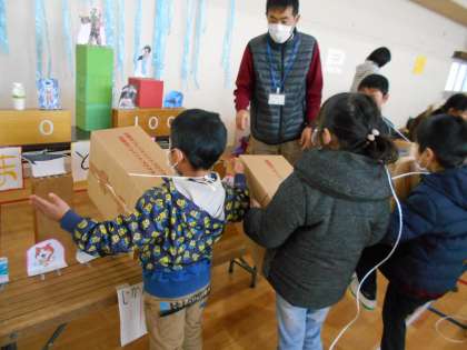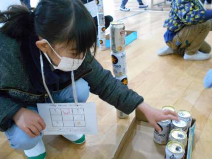 缶つみゲームや,空気砲の的当てゲームなど,各校が工夫を凝らしており,4くみの子どもたちも大盛り上がりで楽しみました。