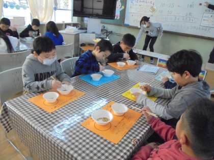 中間休みに豆つまみ大会がありました。クラスで去年の最高記録を聞くと23個ということで,23個を以上を目標に豆つまみをしました。