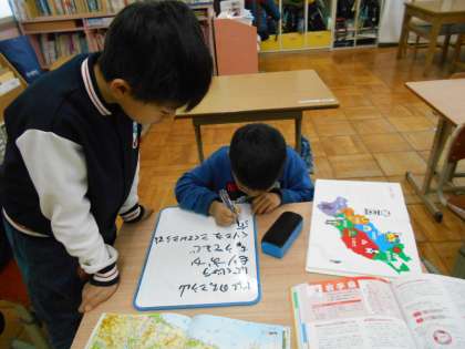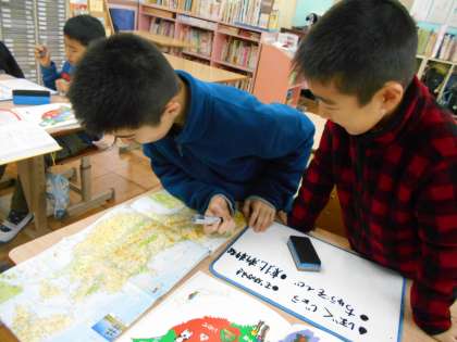今日は岩手県について本や地図帳で調べた後,ペアごとに発表しました。