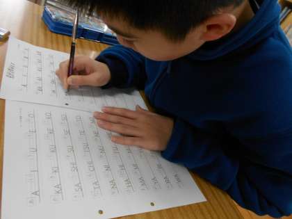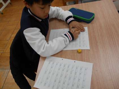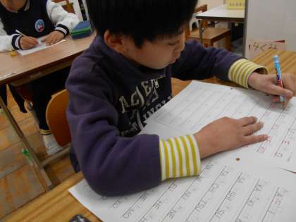 初めて学習した児童もおり,五十音を写すだけで一苦労でしたが,みんな丁寧な字で書いていました。