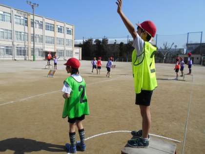 ボールをキャッチするのが難しいですが,仲間と声を掛け合いながら楽しく活動しています。