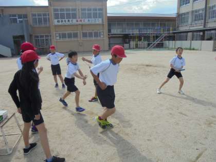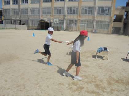 リレーの学習では,チームのタイムを縮めようとバトンパスの練習や走順,コースの走り方など工夫していました。