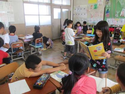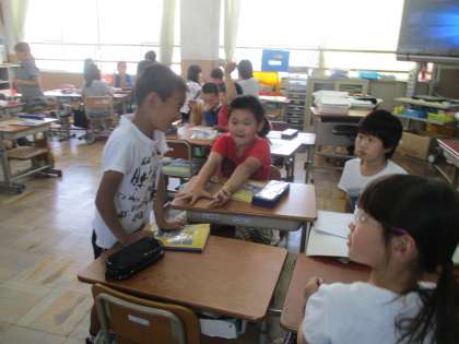 国語「よい聞き手になろう」では,聞き手のポイントに気を付けながら,お話会をしました。自分の話をするのも,それに対して質問をするのも,楽しそうでした。学習の終わりには,「話の中心に気を付けると,内容がよくわかりました。」「よい聞き手だと,話してて気持ちよかったです。」など,次につながる感想も出てきました。