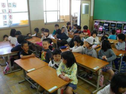 学校たんけんに向けて1年生と2年生で顔合せをしました。