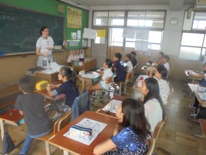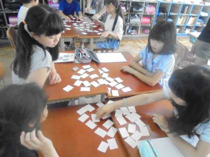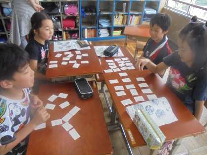 大文字と小文字のアルファベットを一致させるために,マッチングゲームをしました。めくったカードのアルファベットを発音しながら楽しく活動していました。